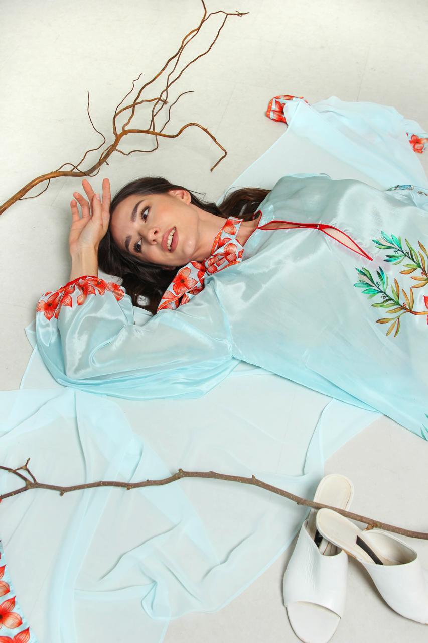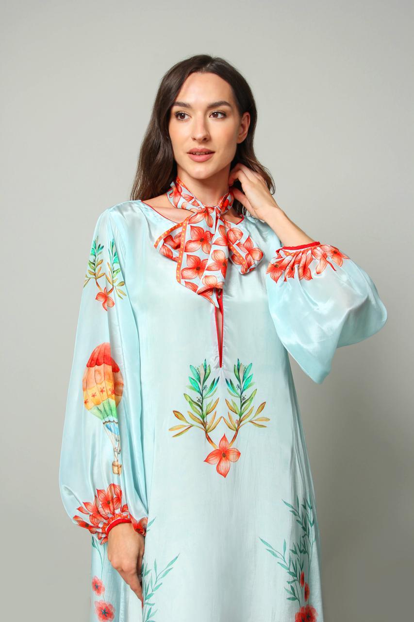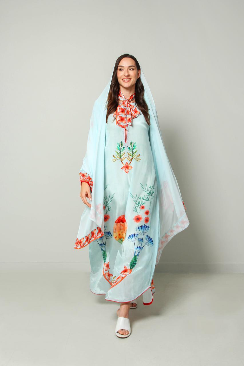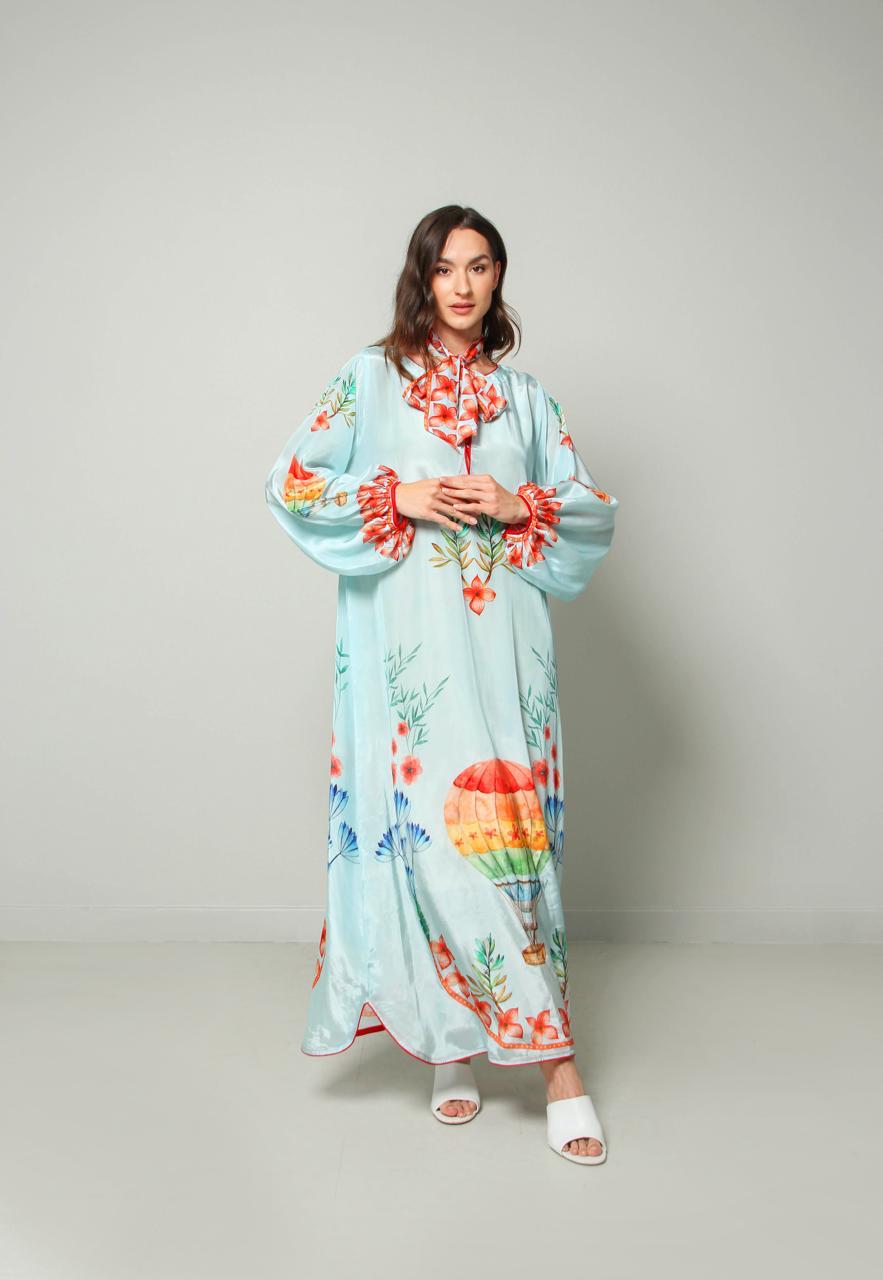 crape silk printed kaftan, beautifully decorated with ballon. suitable for gathering and summer days