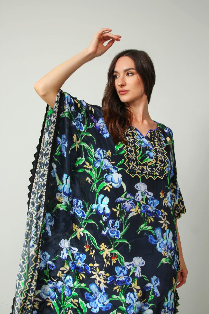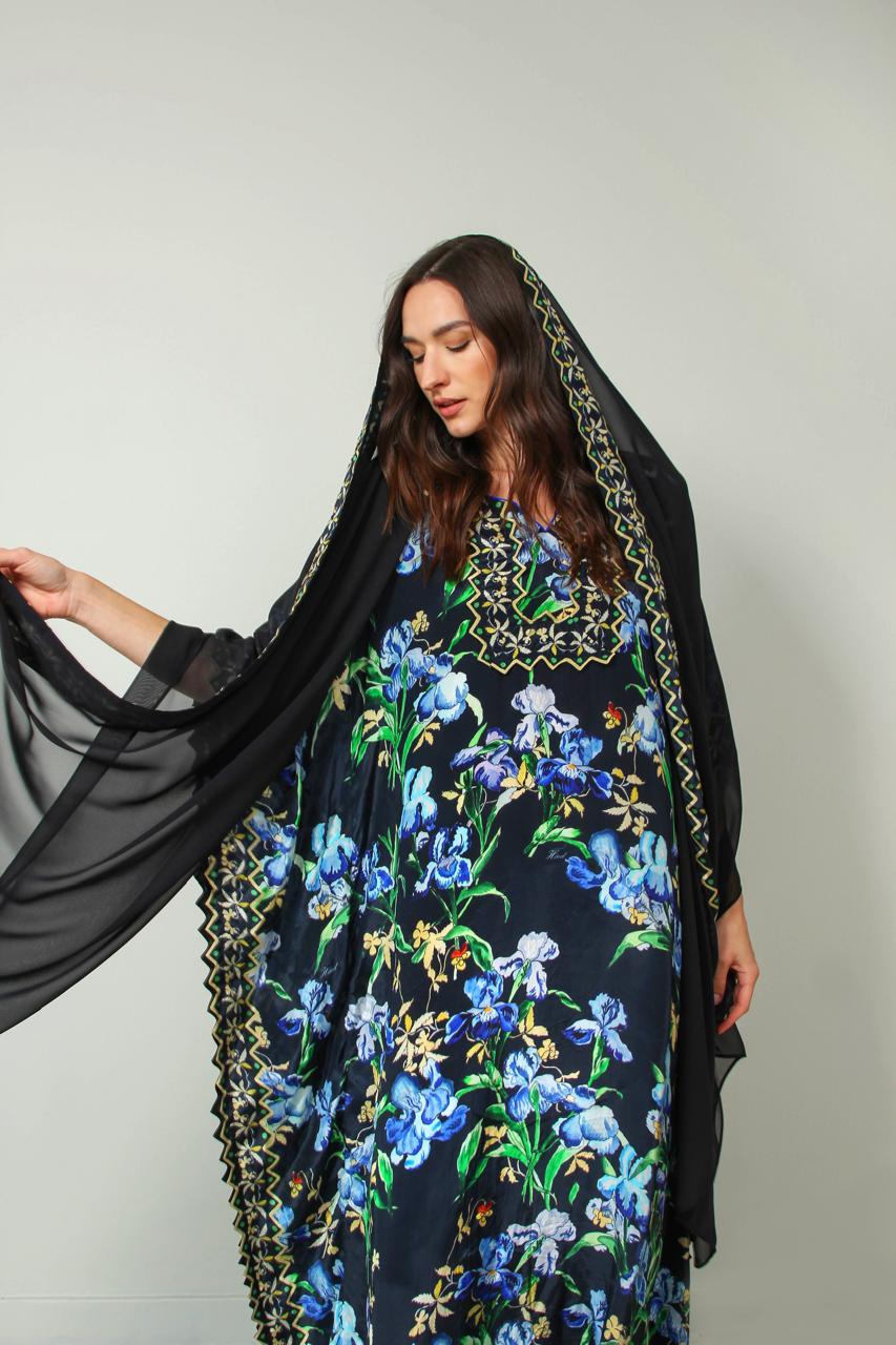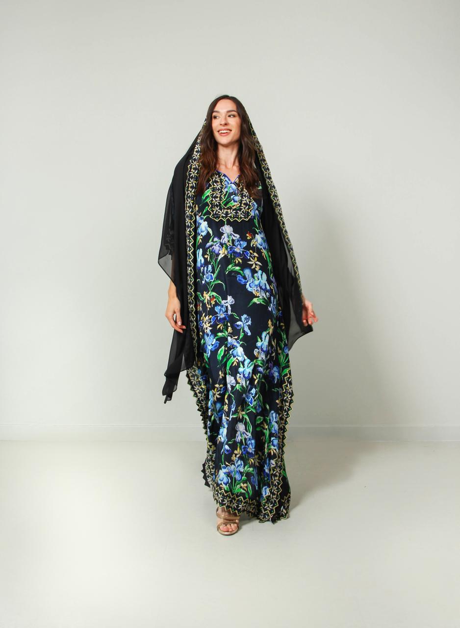 Silk crape kaftan with scarf suitable for summer and Ramadan gatherings