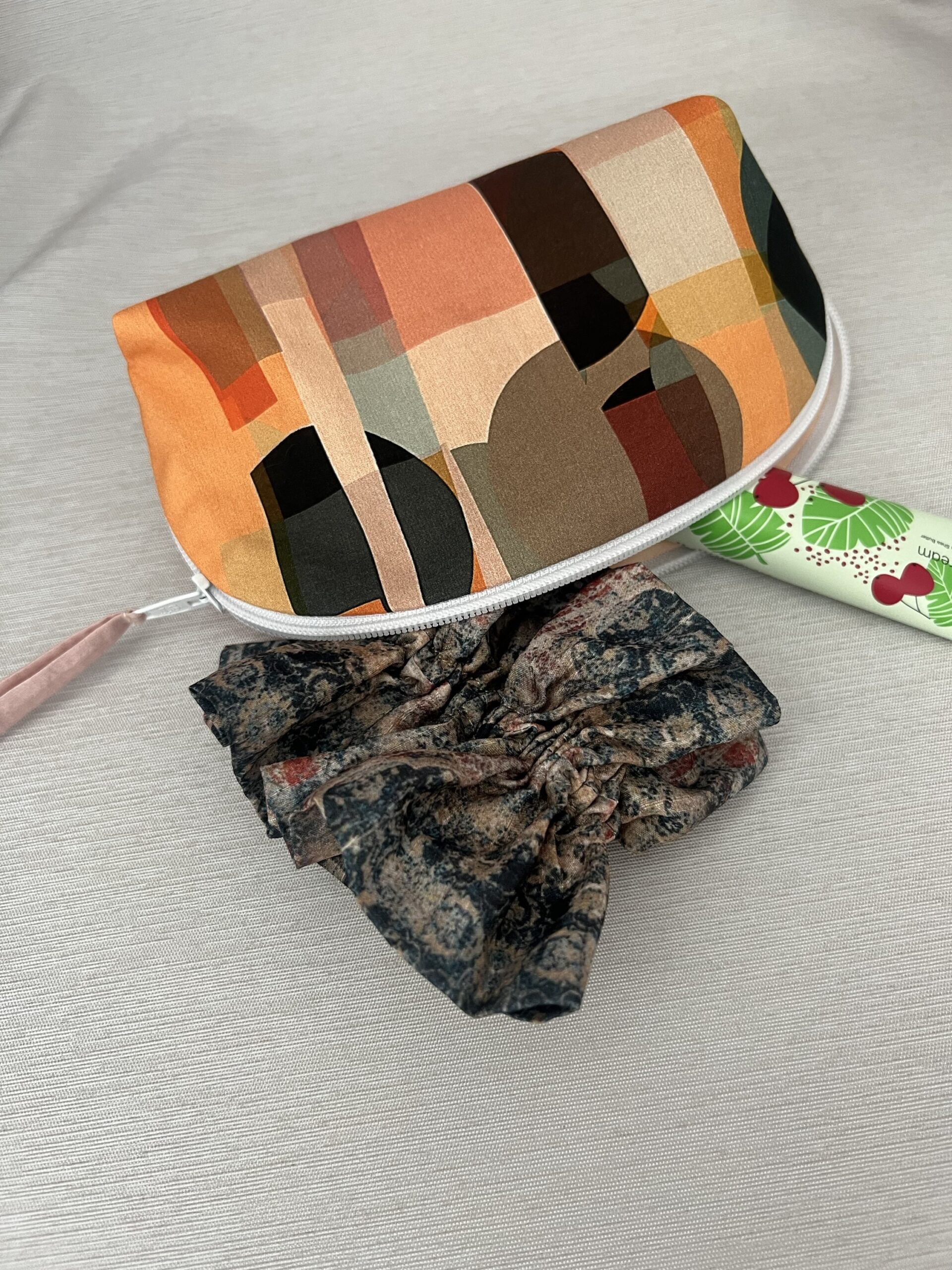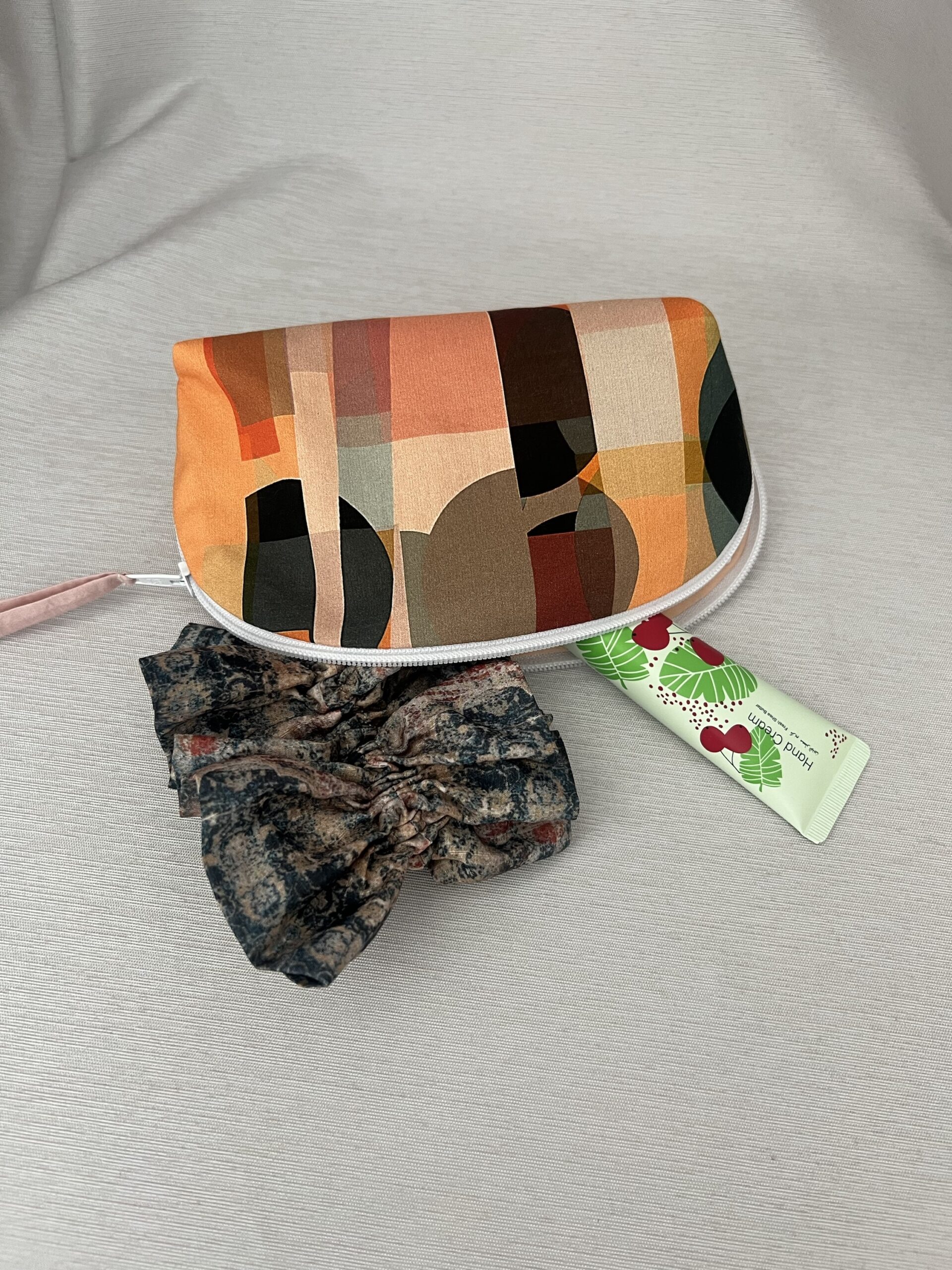 Cute pouch made from cotton Liberty fabrics comes with hand cream and scrunchie as gift can be used as pencils case or vanity case