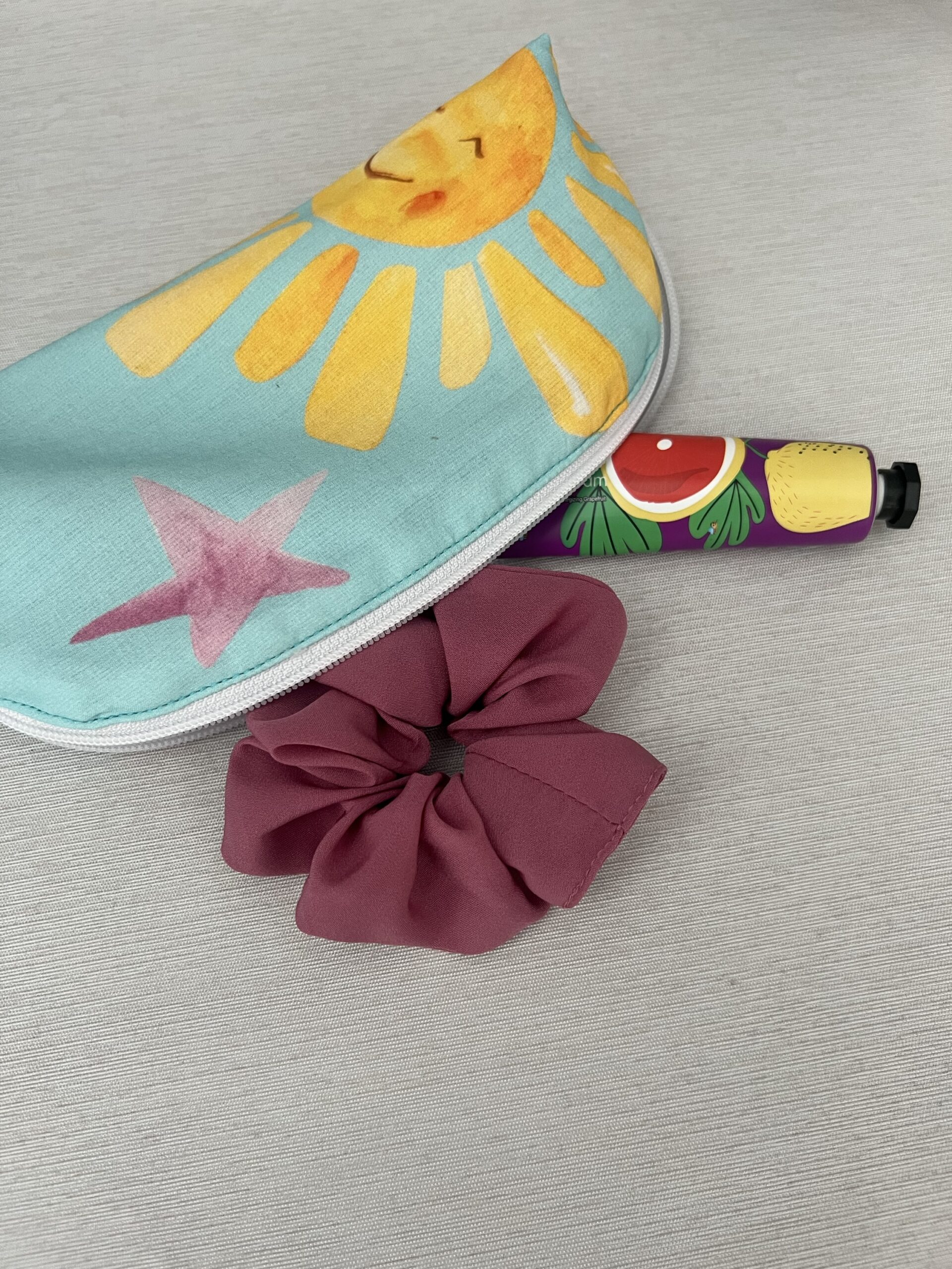 Cute pouch made from cotton Liberty fabrics comes with hand cream and scrunchie as gift can be used as pencils case or vanity case