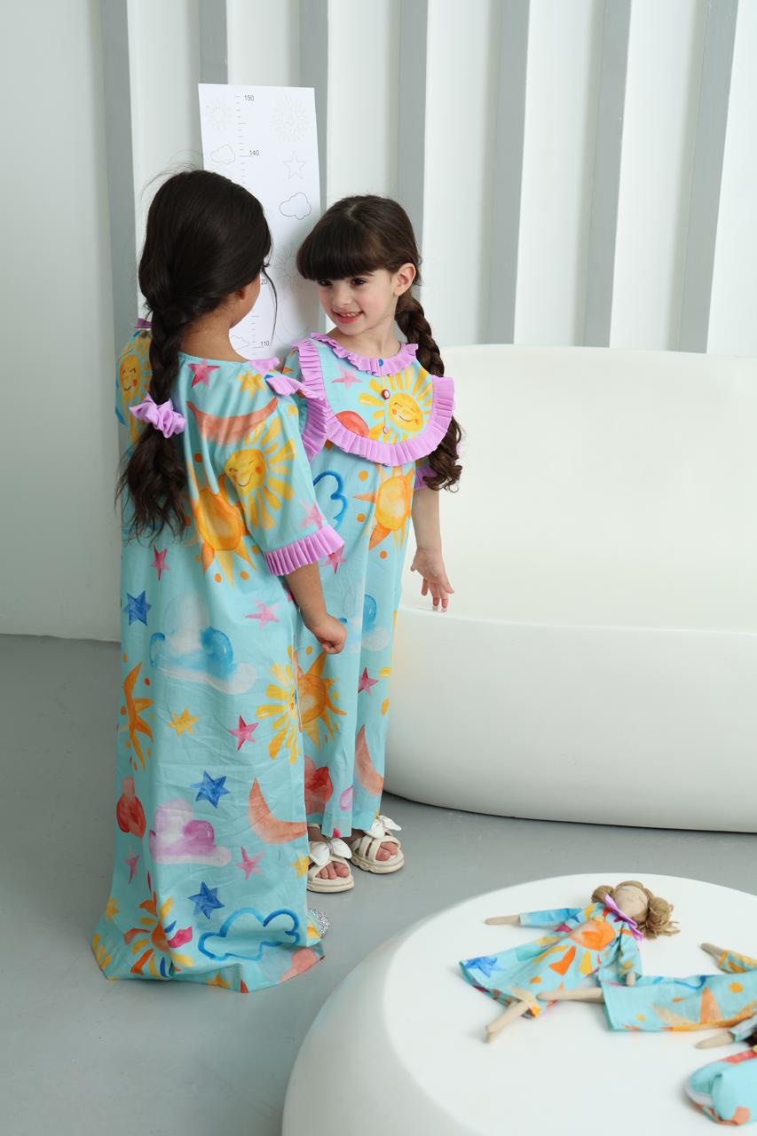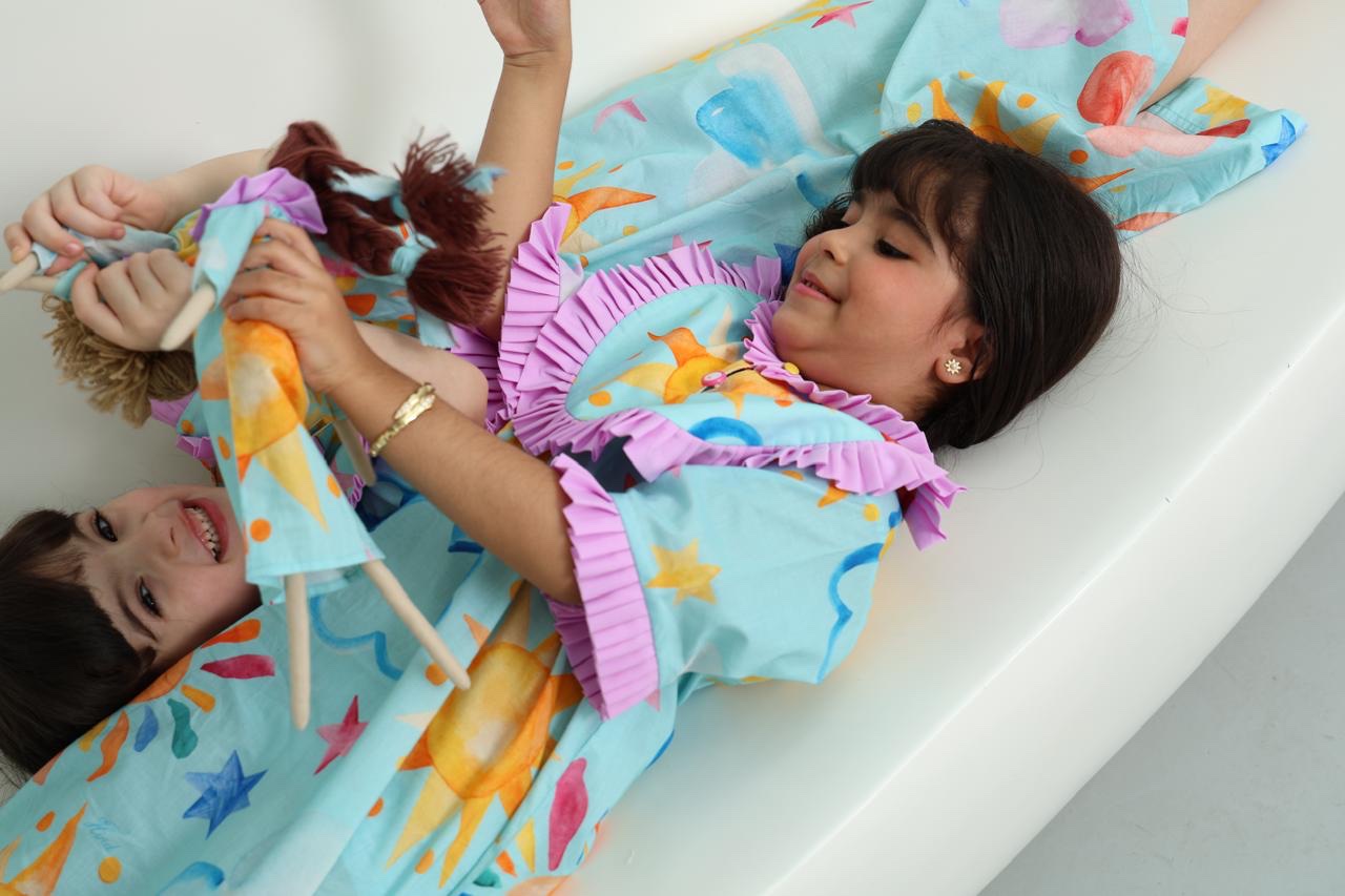 بجامه العيد مصممة بخامة قطنية ناعمة ومريحة على البشرة، تتميز بألوانها الزاهية ورسوماتها اللطيفة مع قصّة عصرية ولمسات أنثوية أنيقة. خيار مثالي للاحتفال بالعيد والنوم براحة وأناقة في آنٍ واحد