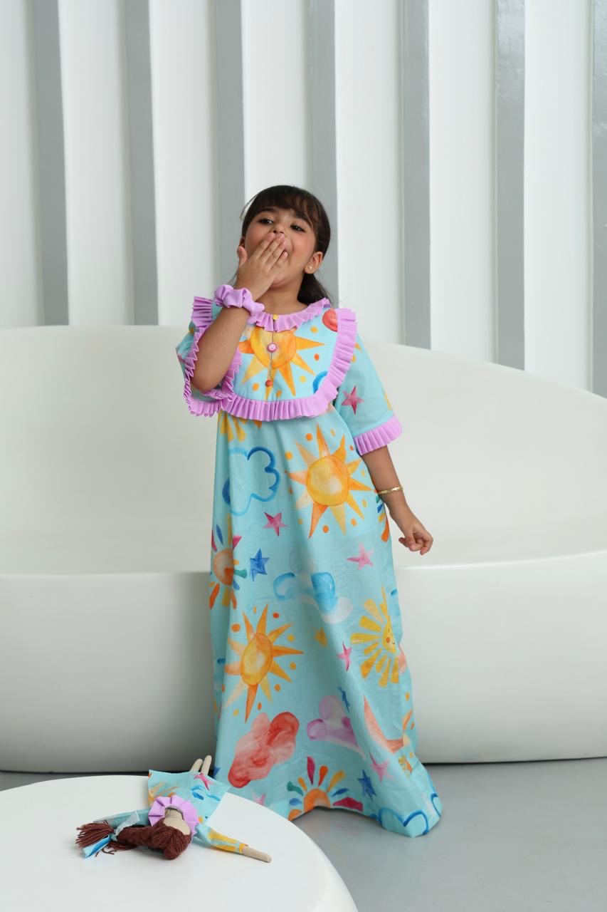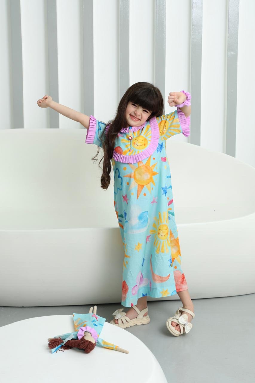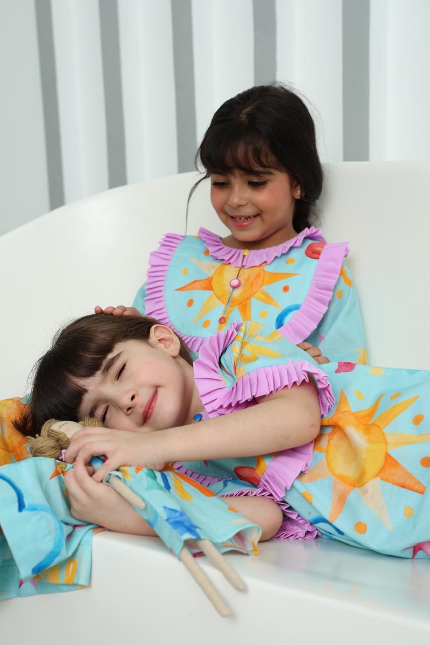 This Eid pajama set is designed with soft, comfortable cotton fabric that feels great against the skin. It features vibrant colors, cute prints, a modern cut, and elegant feminine touches. The perfect choice for celebrating Eid and sleeping in comfort and style.
